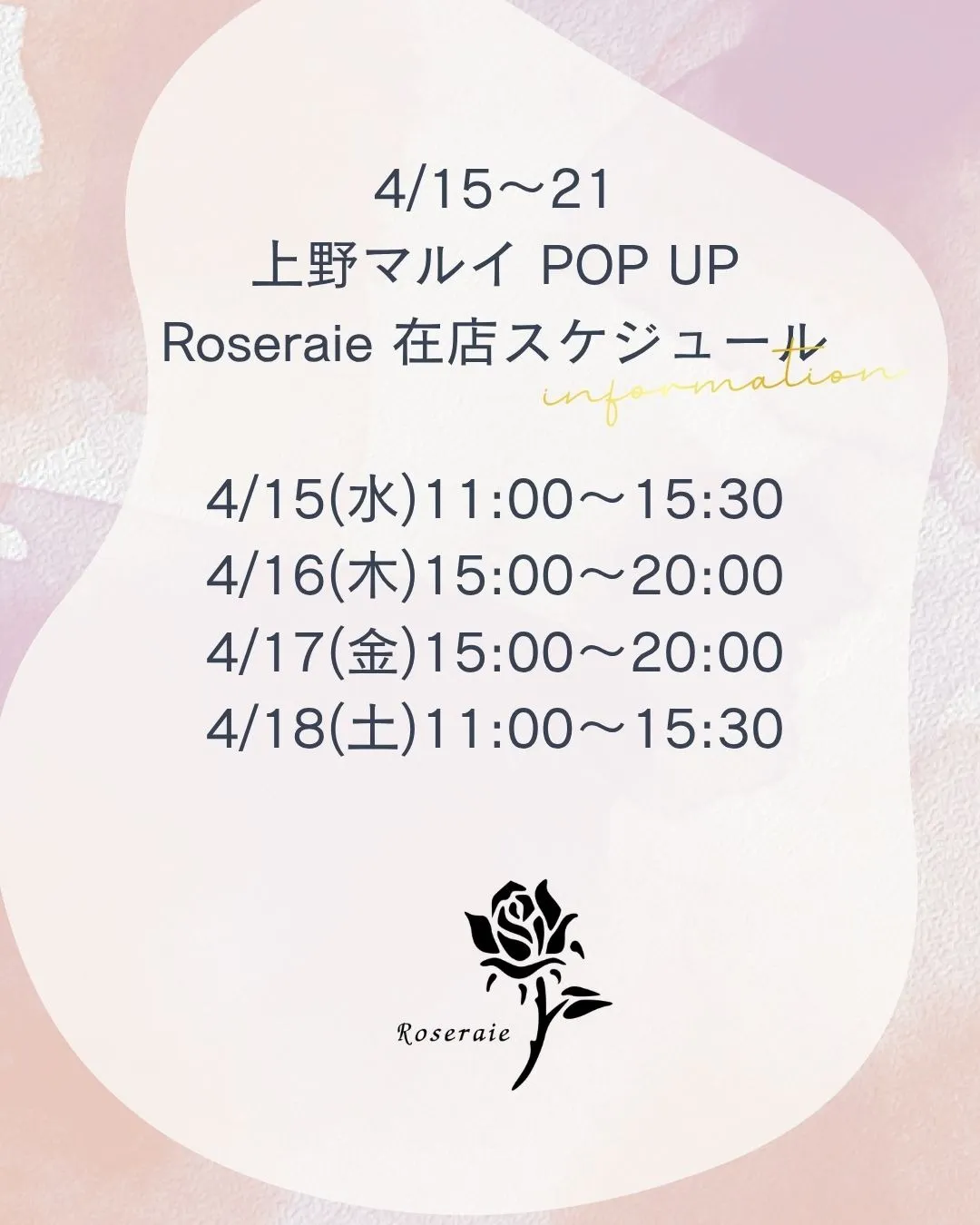 Roseraie 河村の在店スケジュールは下記となります。