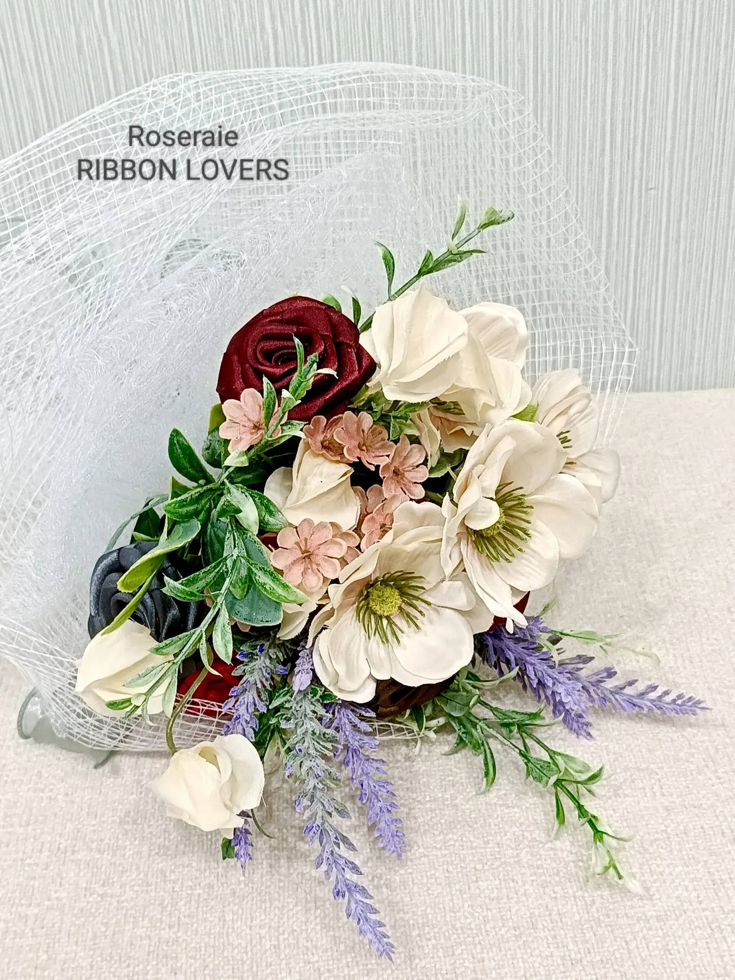 シックなカラーのリボンローズを合わせた組み合わせで大人スタイルの素敵なブーケに💐