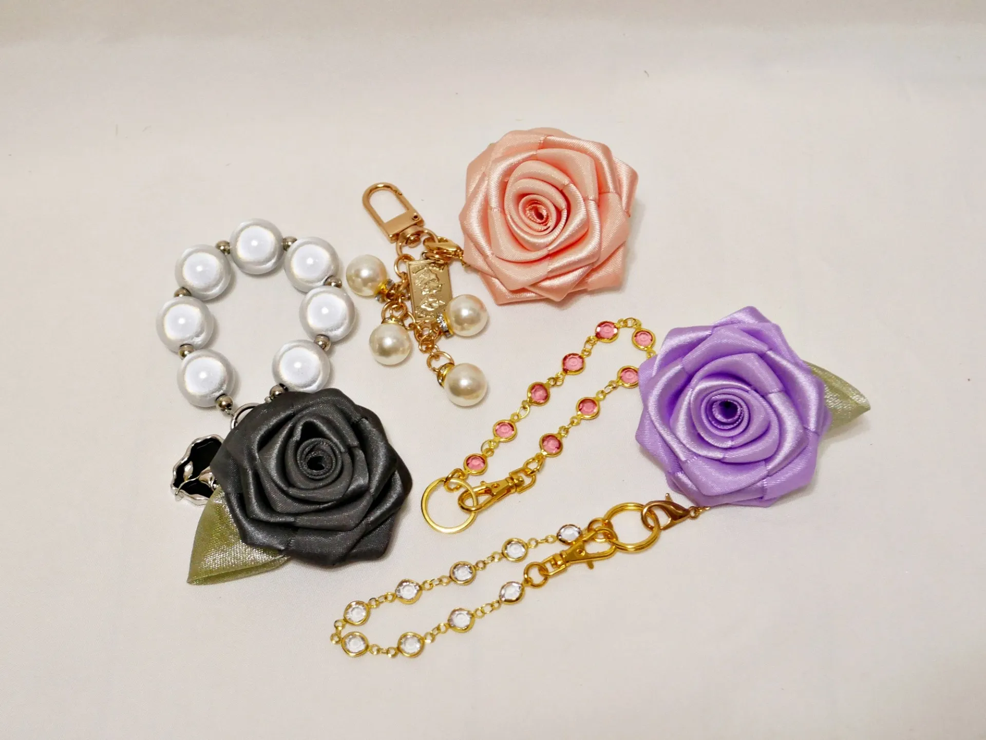 30色のリボンローズカラーからお好みのカラーとお好みのバッグチャームをお選びください♪