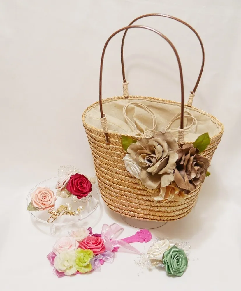 リボンローズカラーをお選びいただけるかごバッグ♪