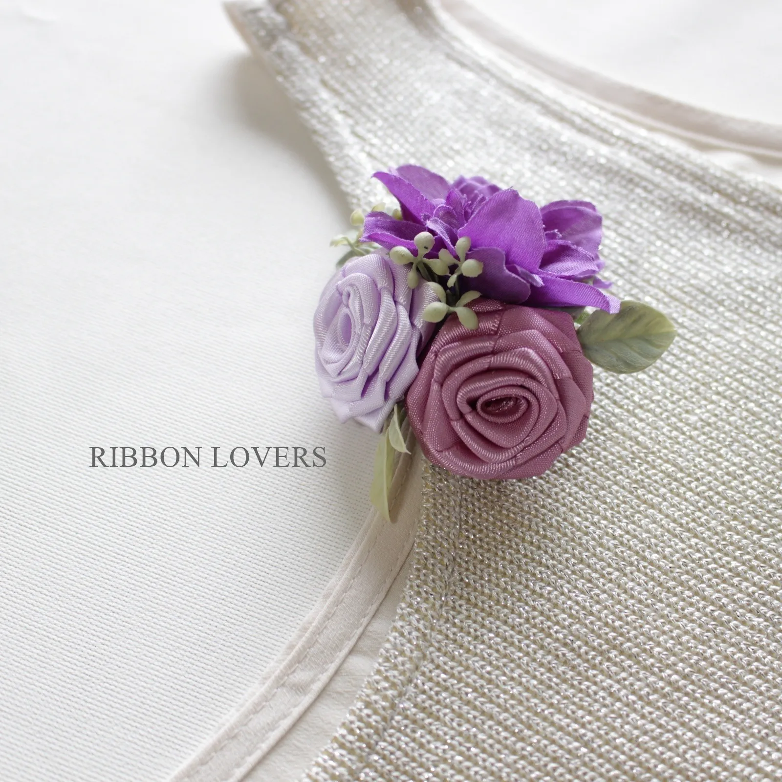 【リボンの薔薇】春の装いにワンポイントコサージュ