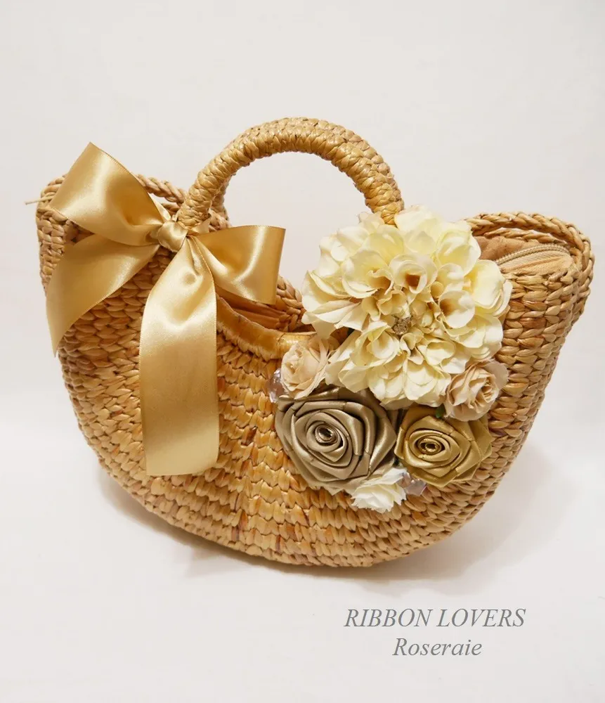 愛情たっぷりのハンドメイドかごバッグリボンローズの魅力